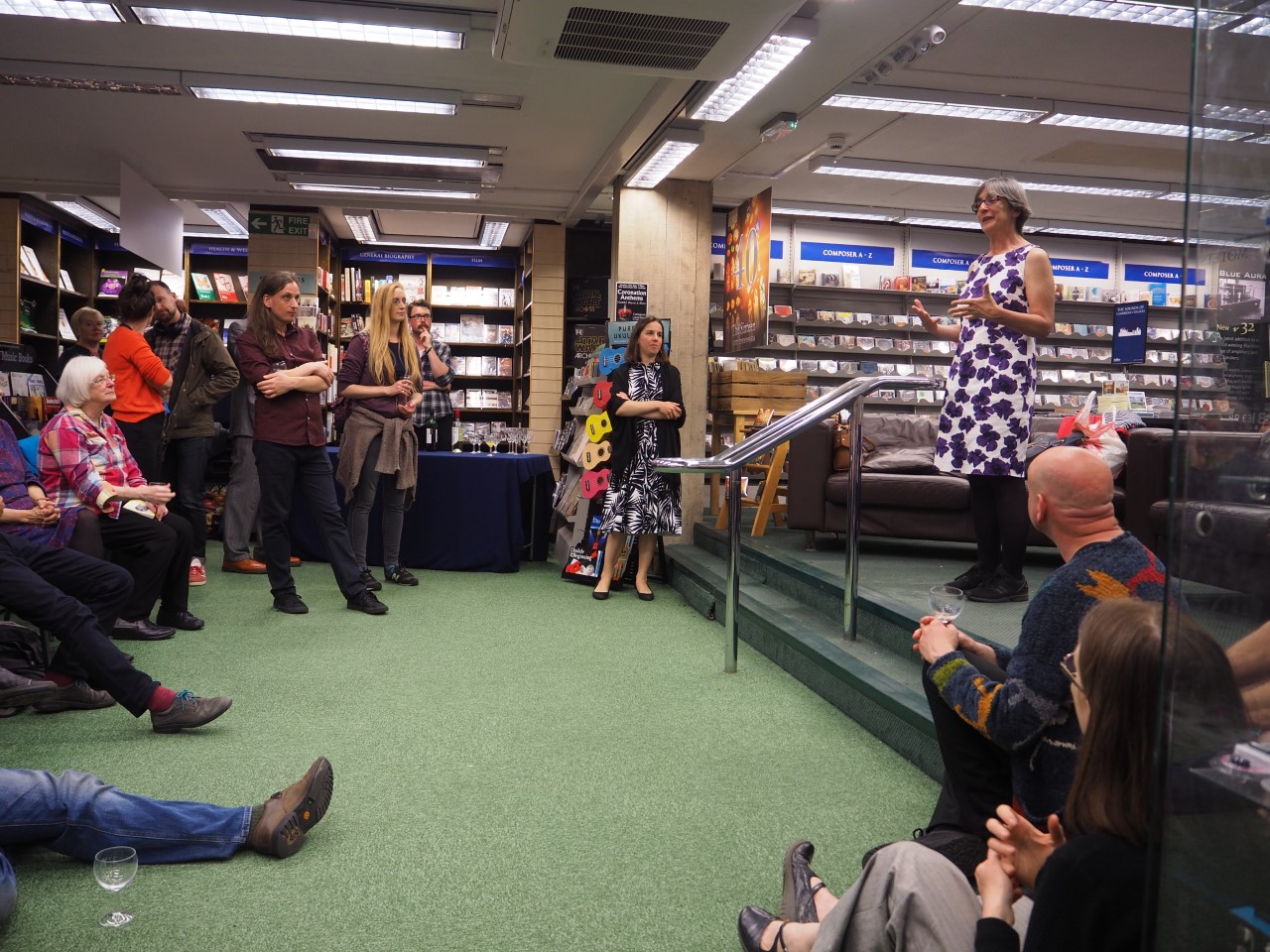 Helen Pankhurst speaking at the Cambridge launch of A Suffragette in America |